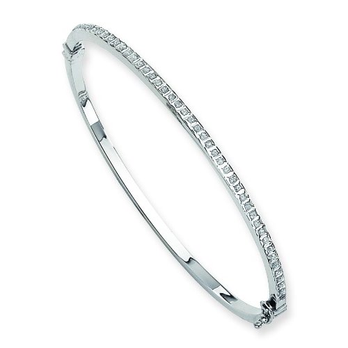 This is a beautiful new White Gold IJ Diamond Bangle Bracelet 7". It is a great gift for yourself or a loved one and makes the perfect addition to any jewelry collection. Style-Bangle Bracelet. Metal-White Gold. Finish-Polishe. Gemstone-Diamond. Gemstone quality-I2, Color- IJ. Gemstone shape-Round. Approximate width-3mm. Approximate weight-3.53 grams.Diamond cttw Approximations: 1/20 = .04 to .07|1/10 = .07 to .13|1/8 = .13 to .17|1/5 = .17 to .22|1/4 = .22 to .28|1/3 = .28 to .36|3/8 = .36 to .44|1/2 = .44 to .56|5/8 = .56 to .54|2/3 = .64 to .69|3/4 = .69 to .8|7/8 = .8 to .94|1 = .94 to 1.1